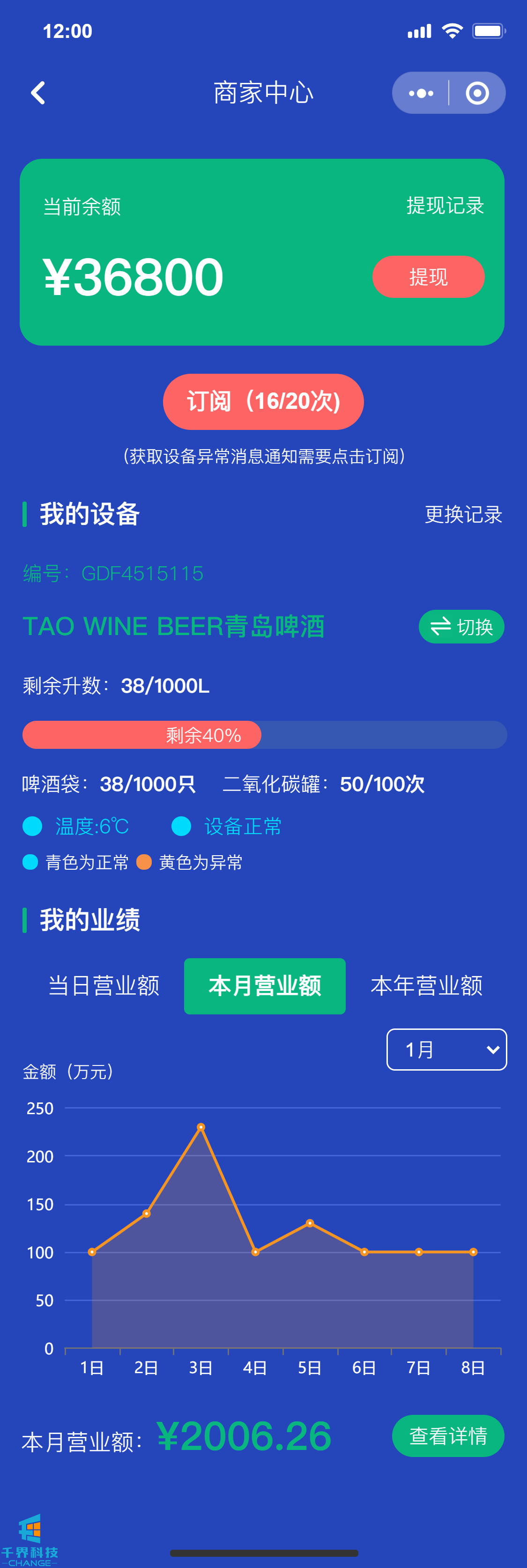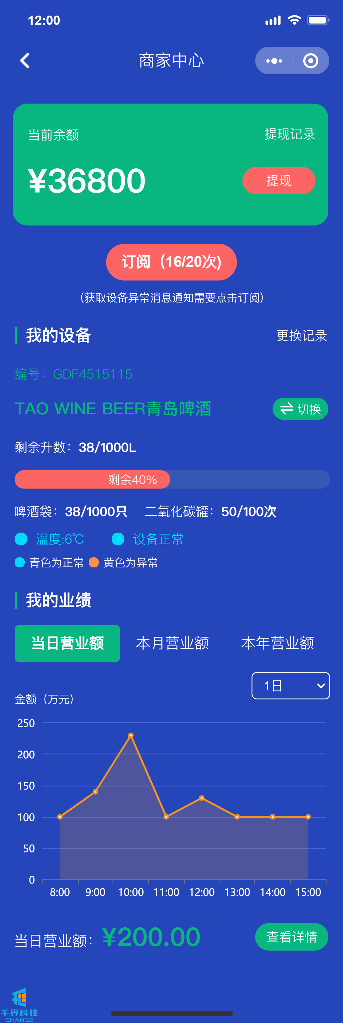 該項目是一個(gè)啤酒機售賣(mài)啤酒小程序,商家購買(mǎi)啤酒機加盟平臺進(jìn)行自動(dòng)售賣(mài)啤酒,用戶(hù)掃碼下單購買(mǎi)啤酒,商家能看到啤酒機每天的營(yíng)業(yè)以及設備的庫存數據,總后臺管理所有的加盟商,能看到平臺整體的售賣(mài)數據