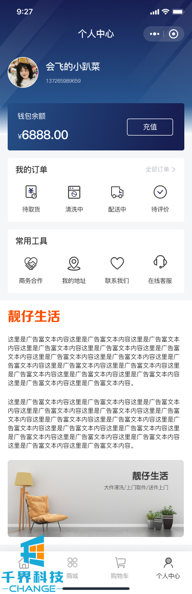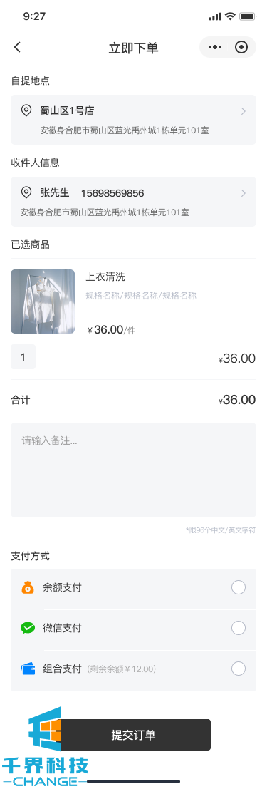 該項目是一個(gè)洗衣商城小程序,用戶(hù)線(xiàn)上下單,選擇指定配送點(diǎn),可線(xiàn)上充值,余額支付。