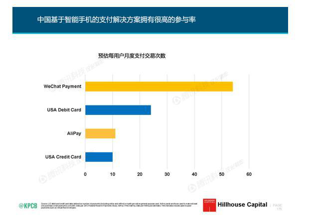 今年6月初,有“互聯(lián)網(wǎng)女皇”之稱(chēng)的瑪麗?米克在其發(fā)布的《2016年互聯(lián)網(wǎng)趨勢報告》中,對微信支付和支付寶在內的多款支付產(chǎn)品月度支付次數進(jìn)行了預估對比: